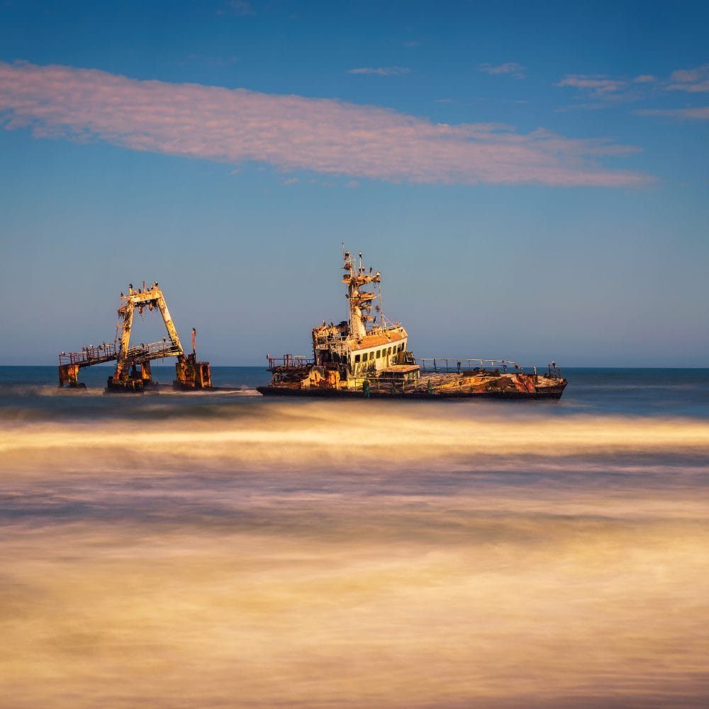 We spend the morning in and around Sossusvlei. This iconic landscape is made up of white plains and red dunes which tower majestically against a deep blue sky and are among the highest in the world. We will visit the picturesque Dead Vlei. This white clay pan lies between towering orange dunes and is dotted with the skeletal remains of hundreds of dead camelthorn trees, making it a striking vista and photographer’s dream. We will stop at the famous Dune 45, a beautiful star dune which reaches over 170 meters in height. Those who feel fit enough to climb the dune will be rewarded with breathtaking views of the surrounding Namibian desert. We will enjoy a short excursion to Sesriem Canyon before heading to Swakopmund.